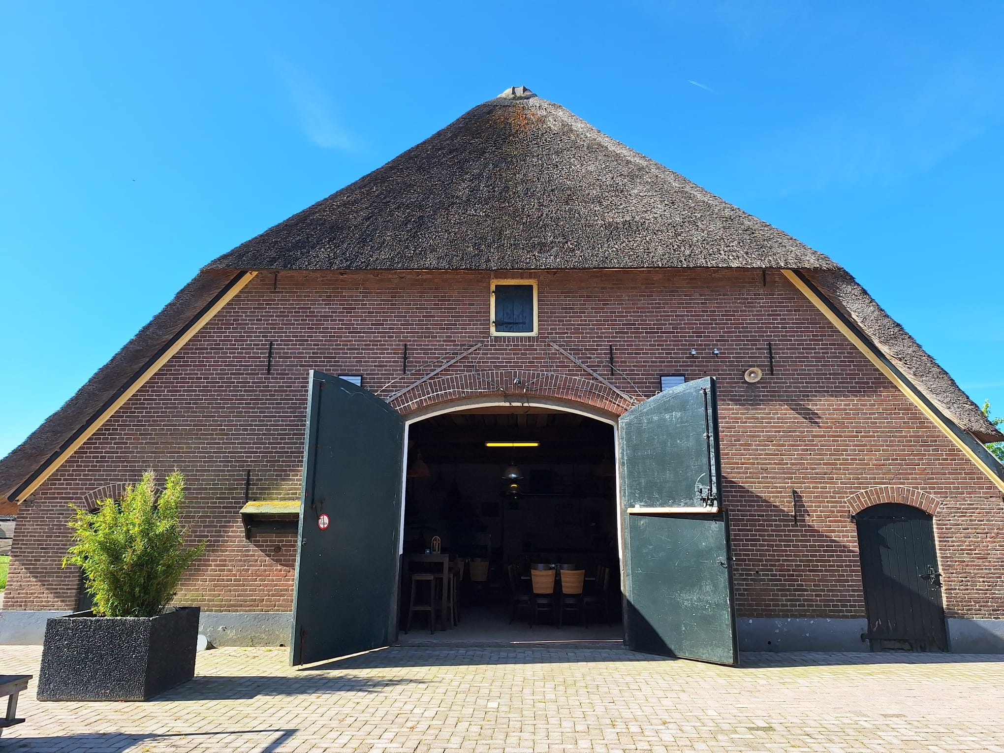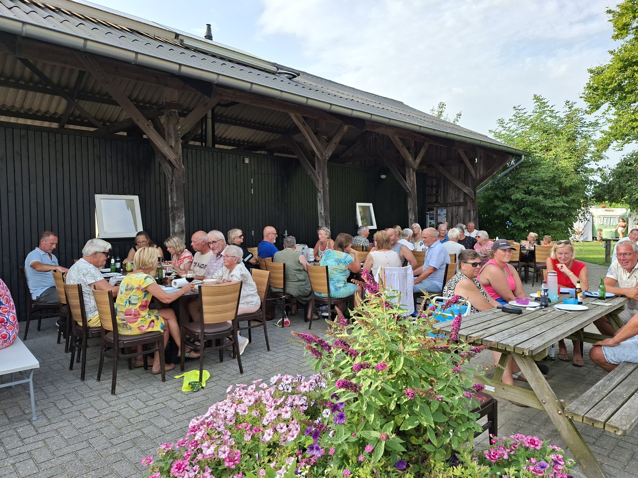 Bij mooi weer eten we gezellig buiten met elkaar en bij minder weer schuiven we aan in de sfeervolle Deel van de oude boerenhoeve.