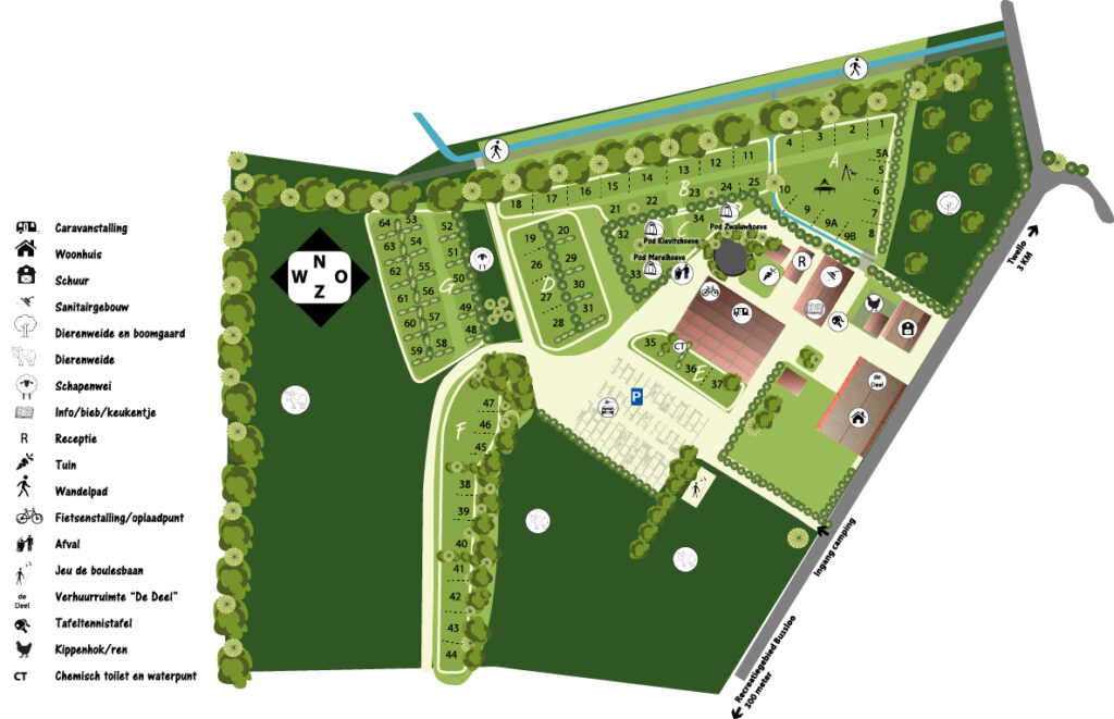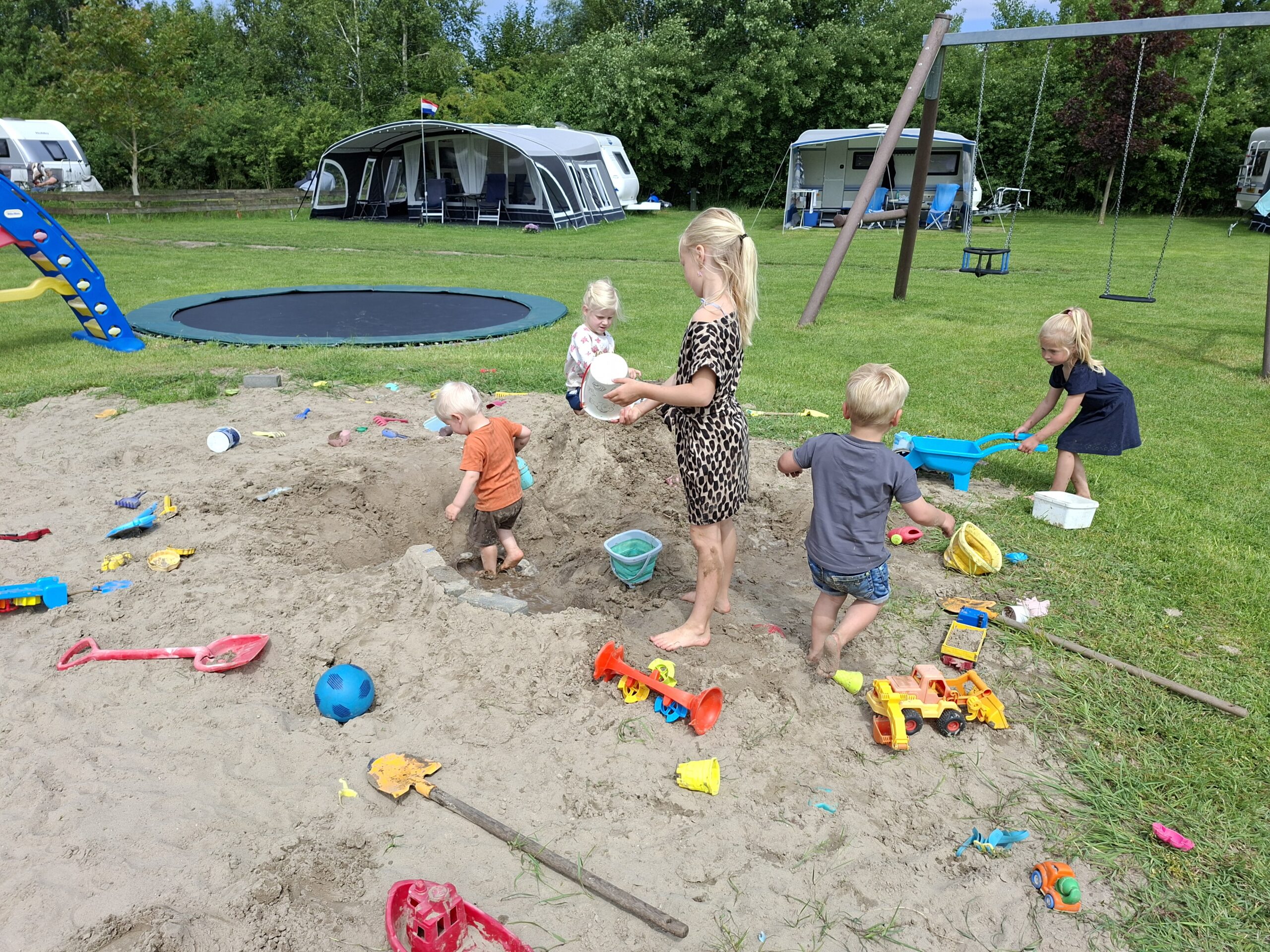 In het midden van veld A vind je een zandbak, trampoline, schommel, houten tipi en glijbaan waar de kinderen heerlijk kunnen spelen.