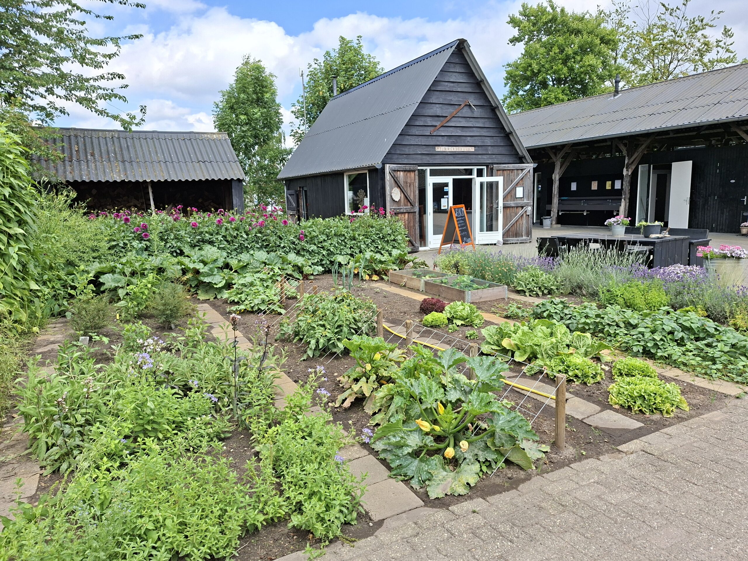 Groente, fruit en bloemen in de tuin zijn onbespoten. Iedereen mag ervan mee eten of een mooi boeketje samenstellen voor bij de caravan of tent.