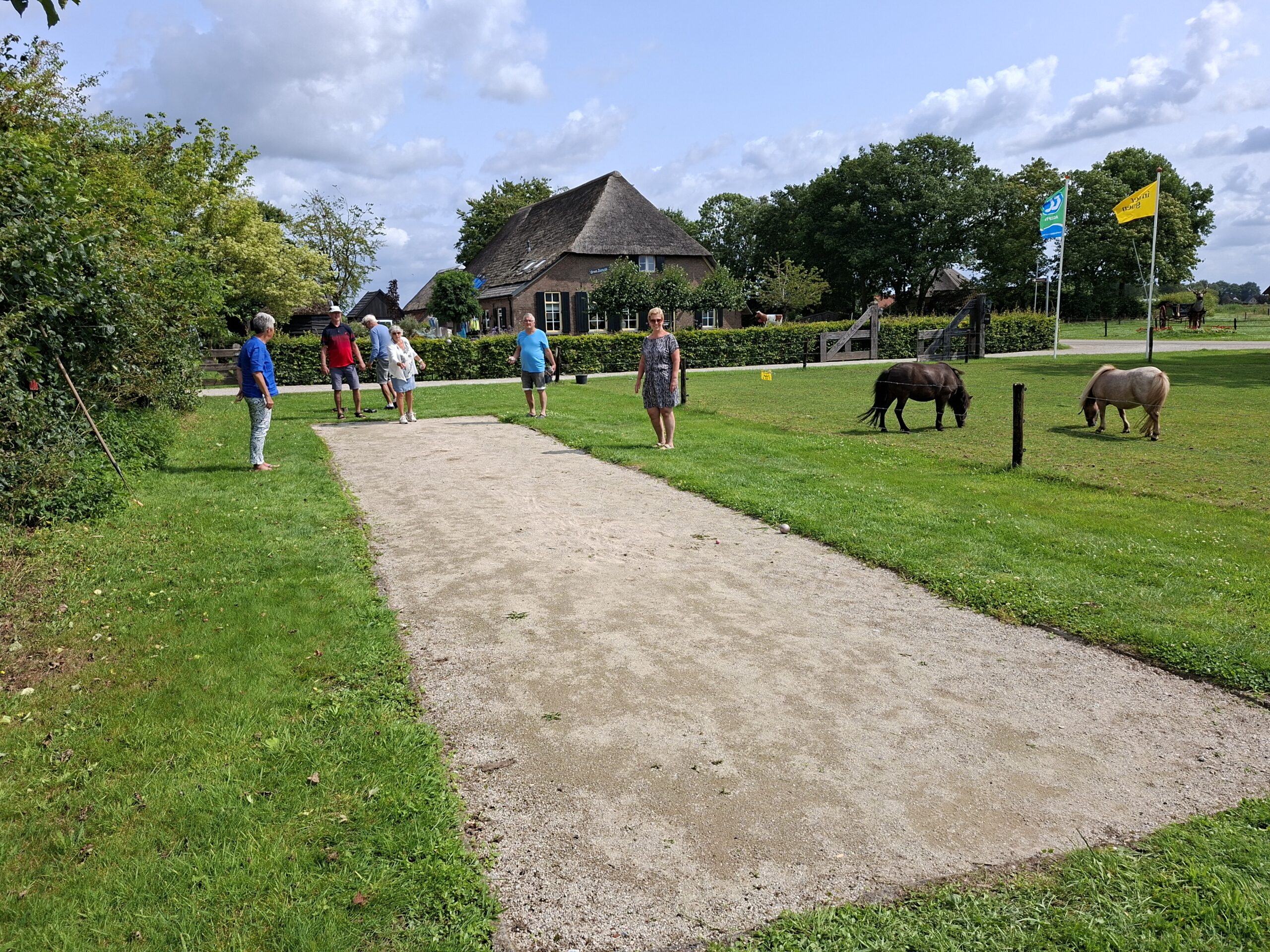 De jeu de boules baan ligt naast de ponyweide en is gratis beschikbaar voor iedereen. Jeu de boules ballen zijn te leen in de huiskamer.