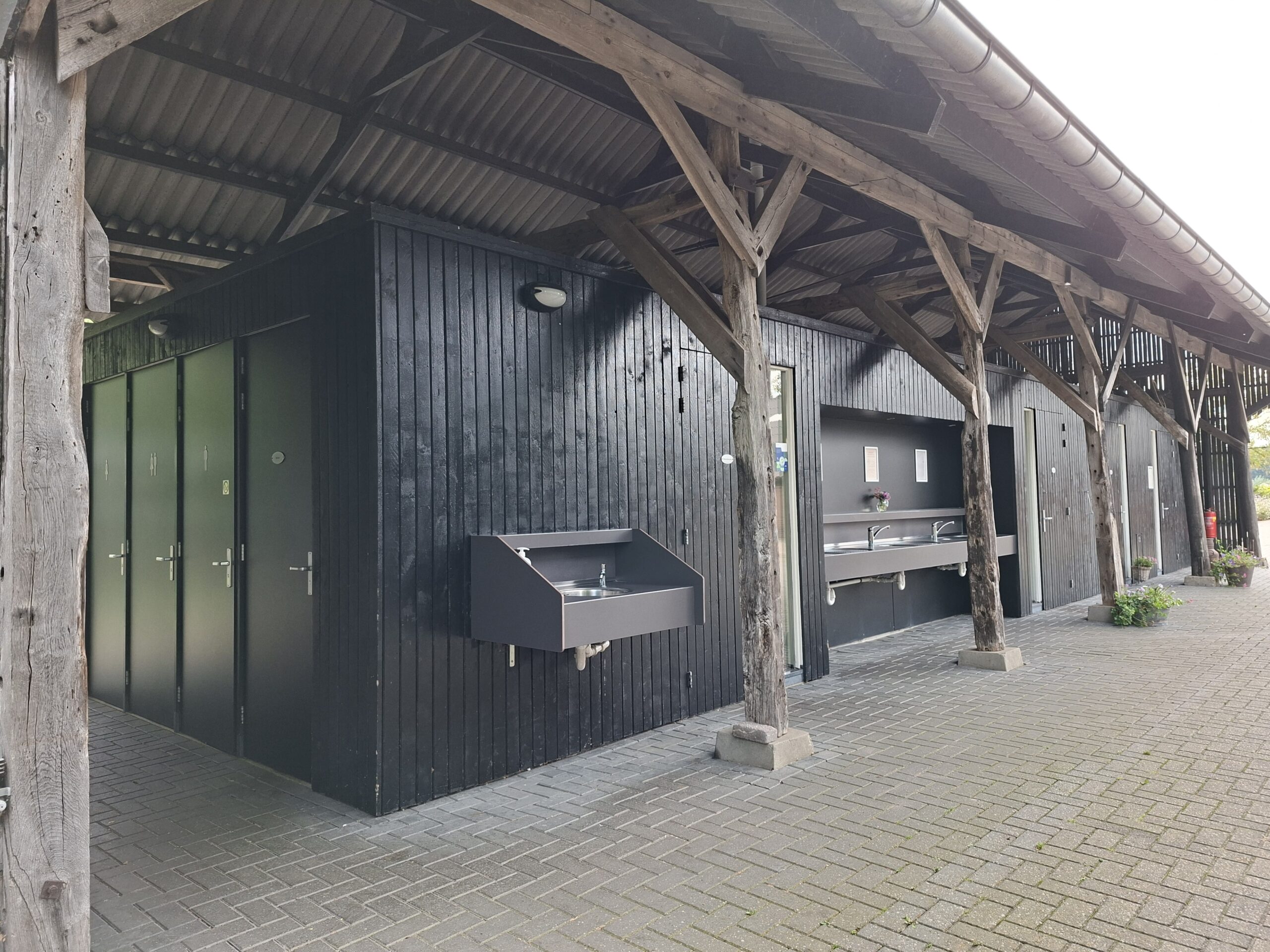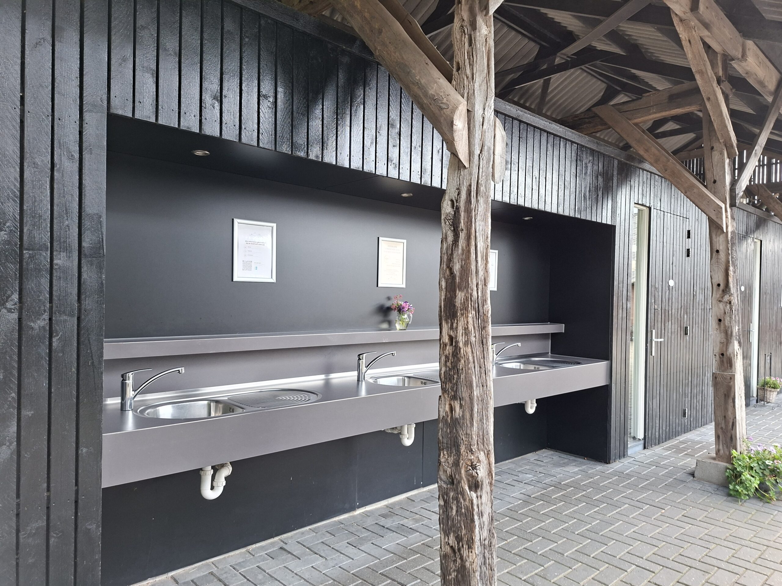 Al het sanitair is gerealiseerd onder de oude kapschuur waardoor de authentieke sfeer behouden is en het een nostalgische uitstraling heeft.