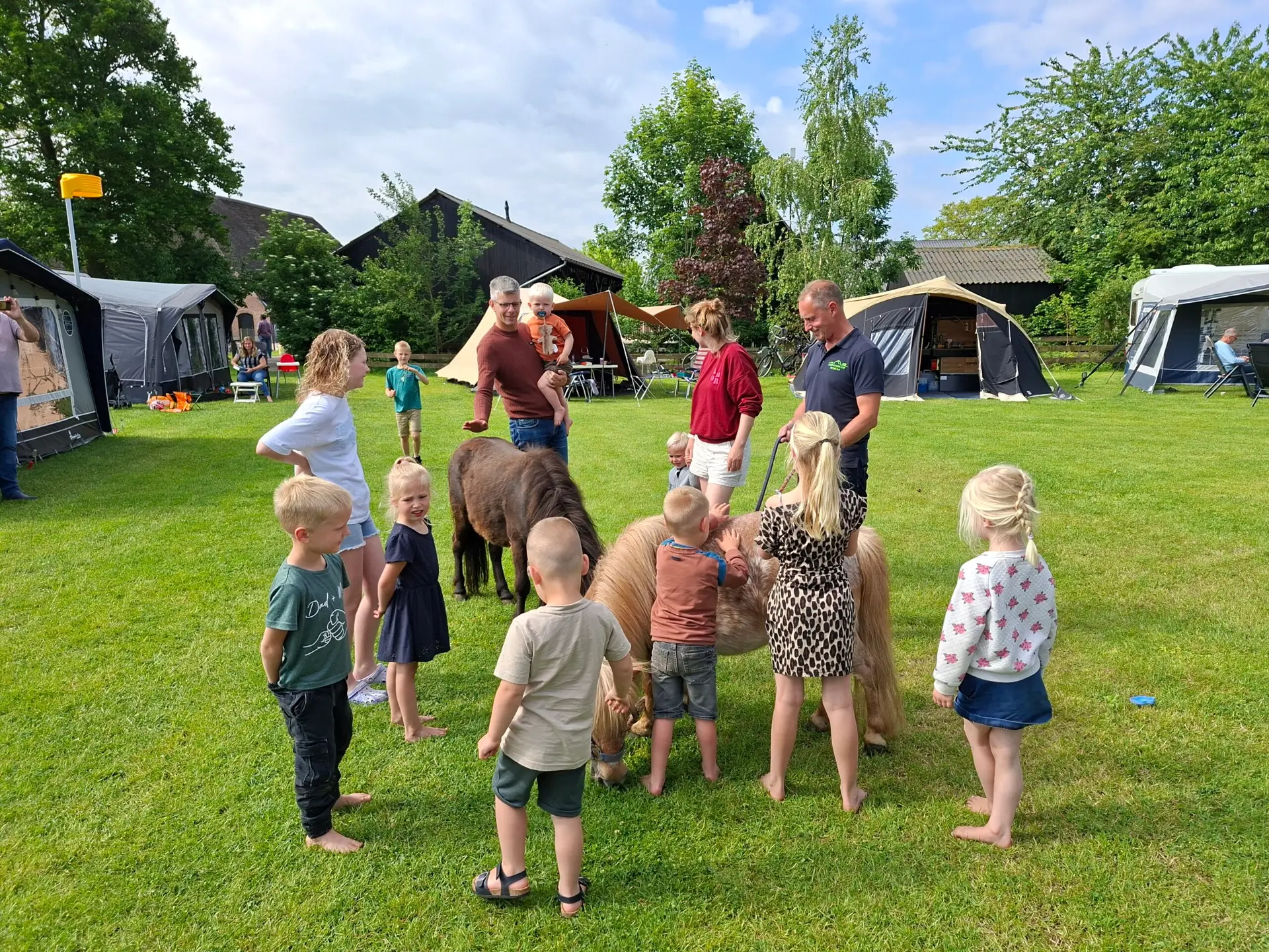 Sofie en Saar zijn lieve shetlandpony's die in de ochtend een rondje maken langs de kinderen op de camping.