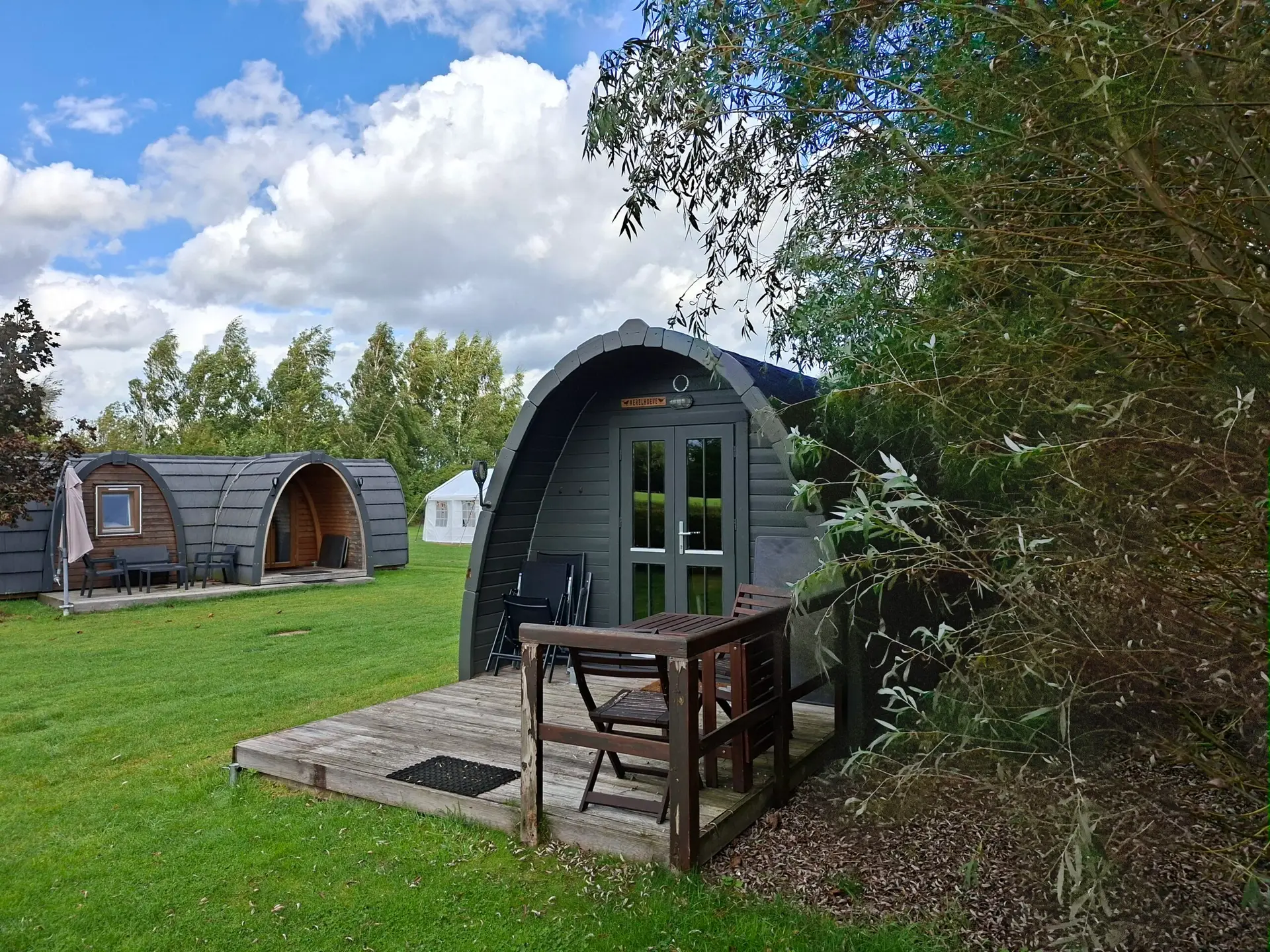 Luxe geïsoleerde pod voor 2 personen met eigen douche, toilet en kitchenette.
